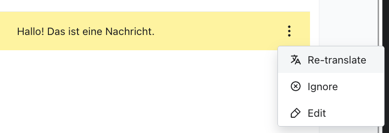 - 필요한 경우 편집 보기에서 메시지를 클릭하여 번역된 텍스트를 수동으로 편집할 수 있습니다.