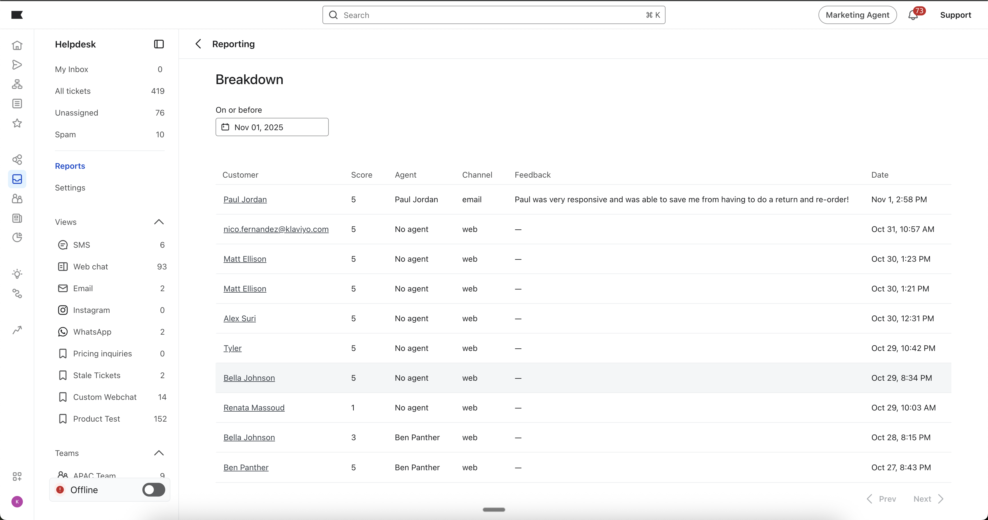 Klaviyo 헬프데스크: CSAT