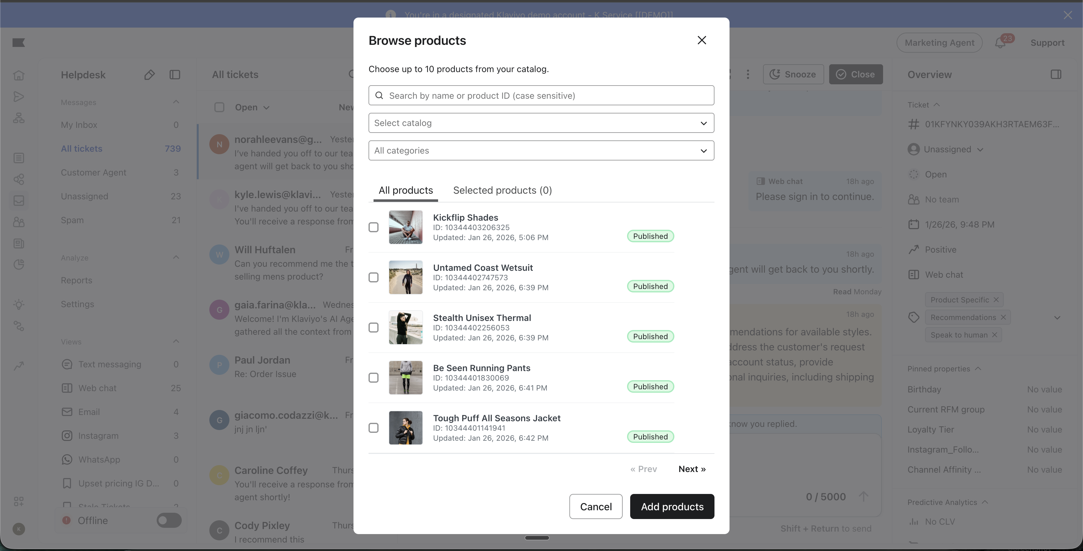 Klaviyo 헬프데스크: 제품 카탈로그 선택기