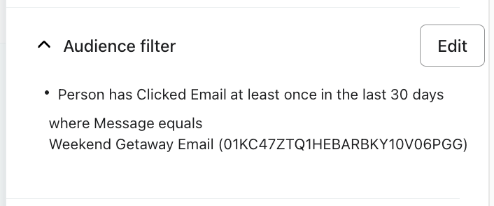 필터에서 향후 참여 유도 조건(예: "메시지 A 클릭" 또는 "메시지 B 열기") 을 사용했는데 해당 메시지가 아직 전송되지 않은 경우에 발생합니다.