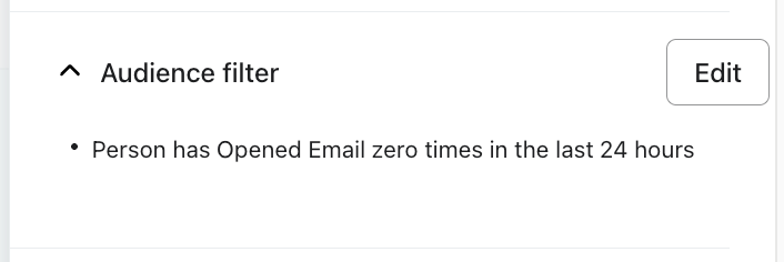 필터는 메시지 전송 시간 직전에 계산됩니다. 이렇게 하면 프로필의 가장 최근 활동 및 속성 변경 사항을 사용하여 정확성을 보장할 수 있습니다.