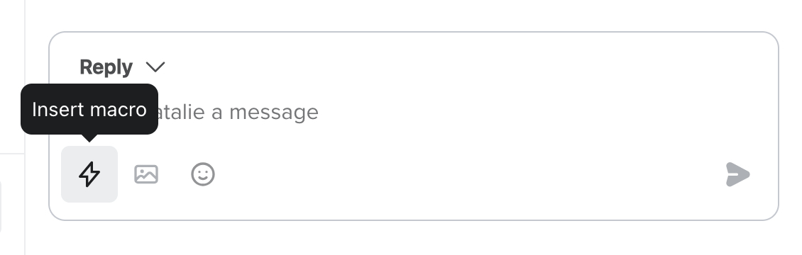 - 답변 필드 아래의 번개 아이콘을 클릭하여 매크로 빠른 삽입 메뉴를 열 수 있습니다.
