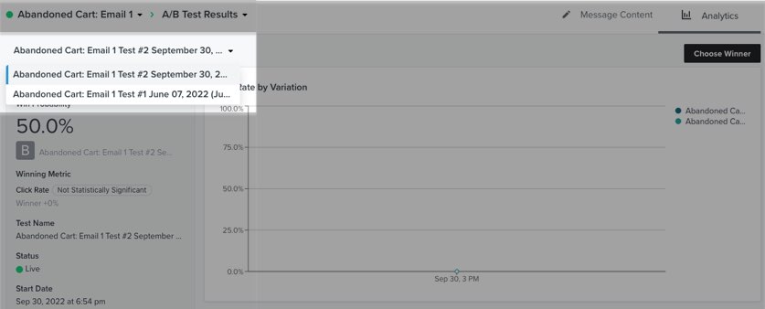 현재 또는 가장 최근의 A/B 테스트 결과를 볼 수 있는 A/B 테스트 결과 탭으로 자동으로 이동합니다.