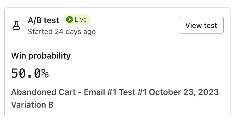 테스트 결과 보기 옵션은 게시된 테스트에 대해서만 표시되며, 여기에는 현재 실행 중인 테스트와 완료된 테스트가 포함됩니다. 테스트를 만들고 게시하는 방법에 대해 자세히 알아보려면 플로우 이메일을 A/B 테스트하는 방법에 대한 도움말 문서를 참조하세요.