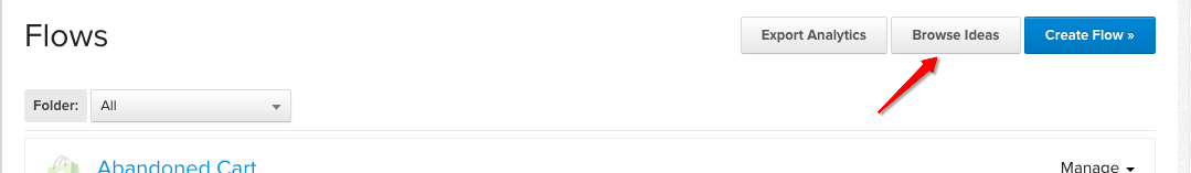 Als Klaviyo's best-practice flow voor websiteverlaters niet vooraf is ingevuld in je account, kun je deze flow nu ophalen uit het gedeelte Bladeren doorideeën van je flow-tabblad.