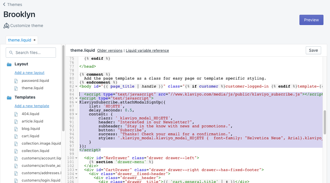 In dit artikel wordt uitgelegd hoe je deze formulieren op je site kunt gebruiken door Klaviyo formuliercode toe te voegen aan het thema van je Shopify zaak.