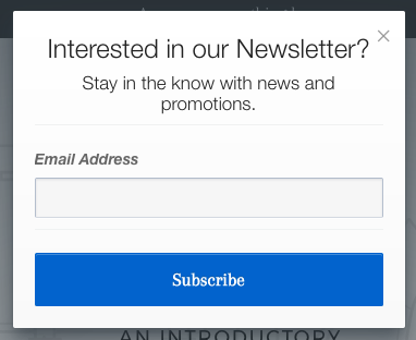 Zodra de code in je template is geplakt, bezoek je de URL van je zaak om te controleren of alles er goed uitziet. Zo ziet onze basispop-up eruit: