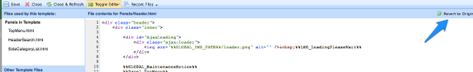 Als je problemen ondervindt met het formulier kun je terugkeren naar de oorspronkelijke vorm van je BigCommerce themabestanden door op Terug naar origineelte klikken .