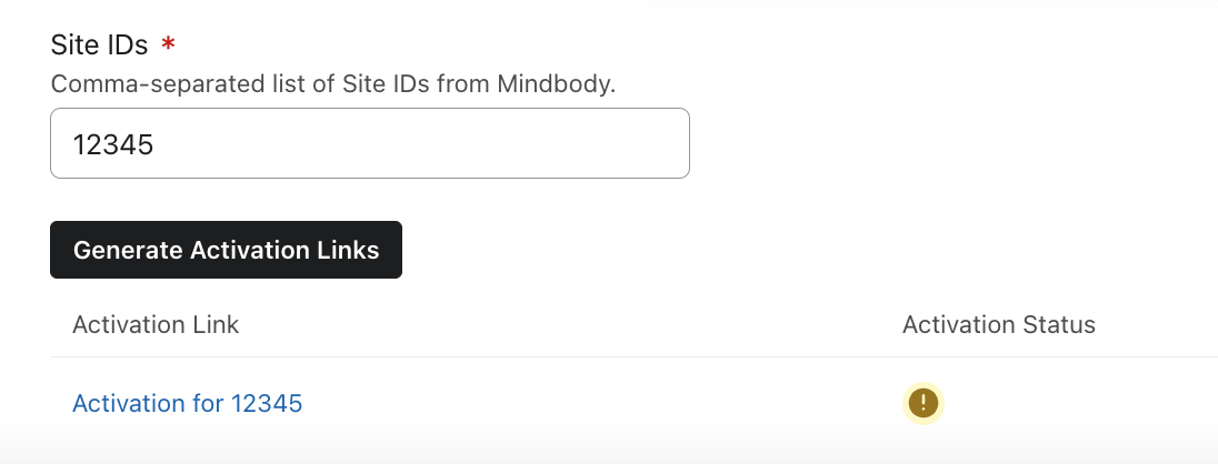 - Klik op de gegenereerde link(s) om je sites te activeren en volg de instructies in Mindbody.