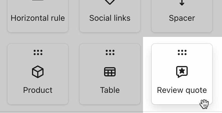 Leer hoe je een productreview binnen een campagne of flow e-mail functioneert via het blok Review quote. Met Klaviyo Reviews kun je dit blok gebruiken om klantgetuigenissen en beoordelingen te gebruiken om vertrouwen in je merk op te bouwen en sociaal bewijs te creëren.