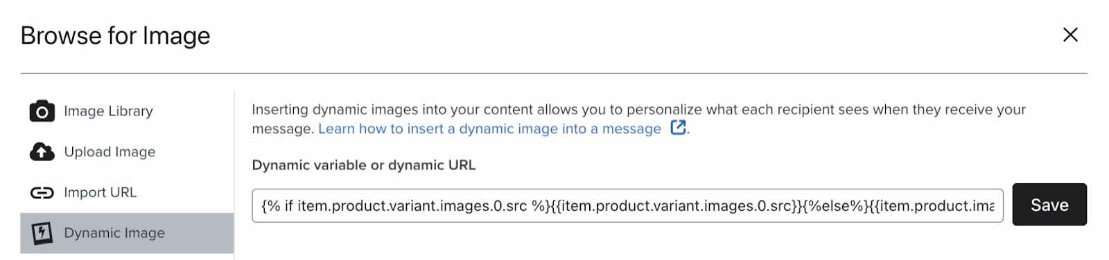 - Selecteer Dynamische afbeelding en plak de dynamische URL erin.