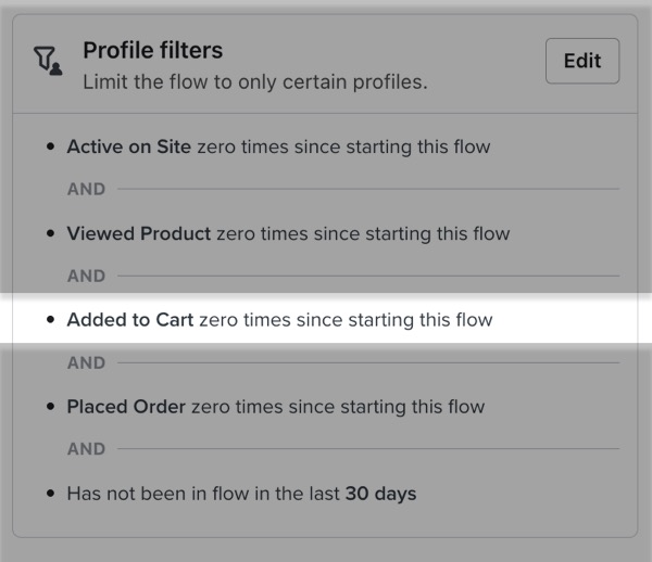 - Wat iemand heeft gedaan (of niet heeft gedaan) > Nul keer toegevoegd aan winkelwagen sinds hij hiermee is begonnen flow