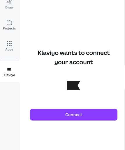 - Klik vanuit een Canva-ontwerp op het Klaviyo-pictogram linksonder.