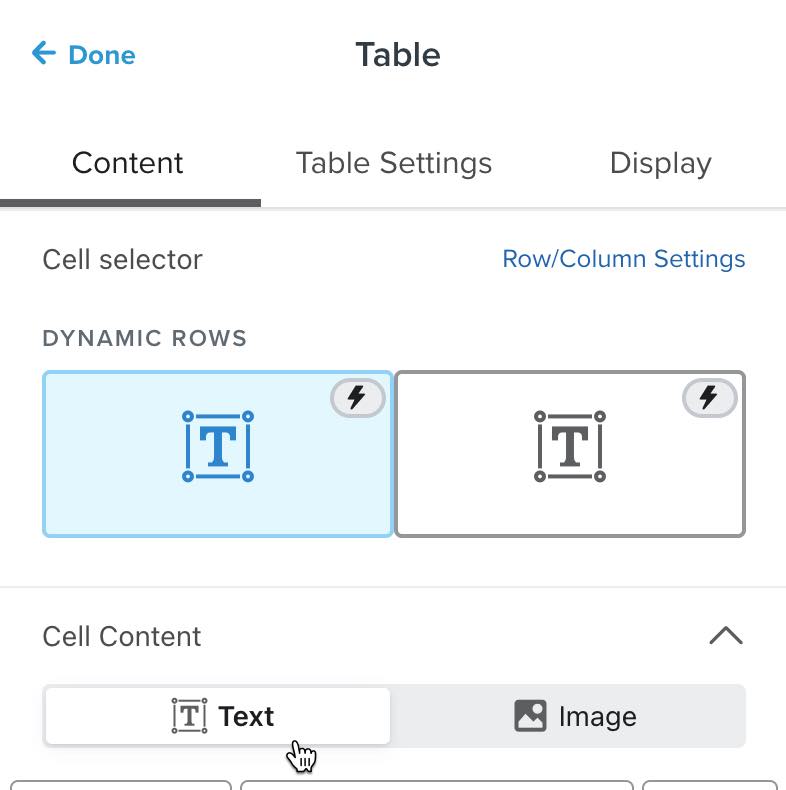 - Zorg ervoor dat de Celinhoud voor beide kolommen van het nieuwe tabelblok is ingesteld op Tekst.