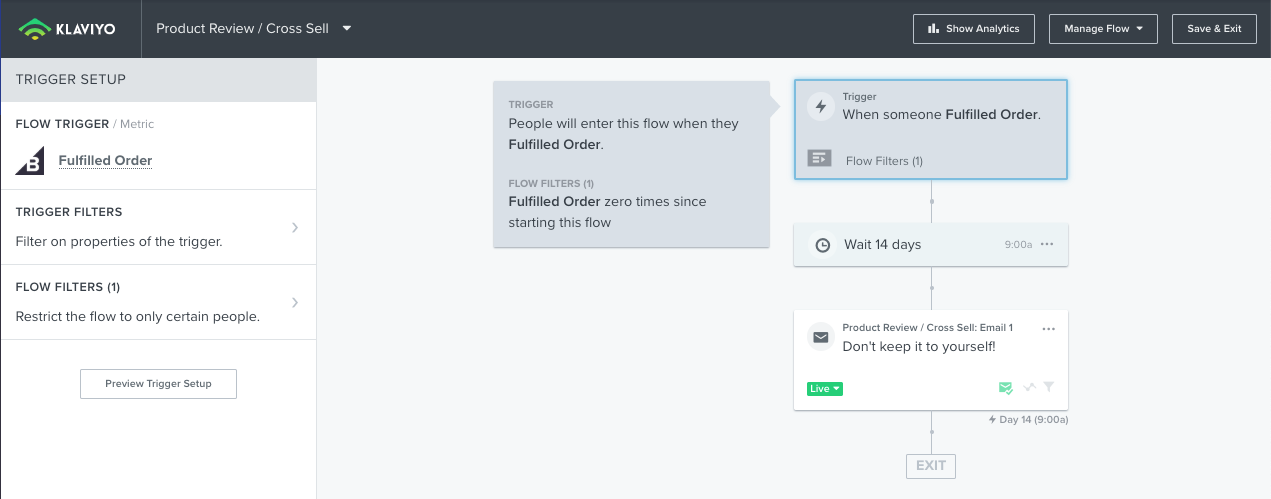 Je kunt je Product Review/bijverkoop stroom filteren op categorie of collectie, zodat je relevantere aanbevelingen kunt geven in de inhoud van je e-mail.