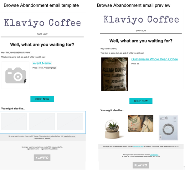 Wanneer je je BigCommerce account integreert met Klaviyo, krijg je toegang tot zowel historische als dynamische BigCommerce gegevens die je kunt gebruiken om je klantervaring te personaliseren. Er zijn veel uitstekende manieren om dit te doen met Klaviyo stroom.