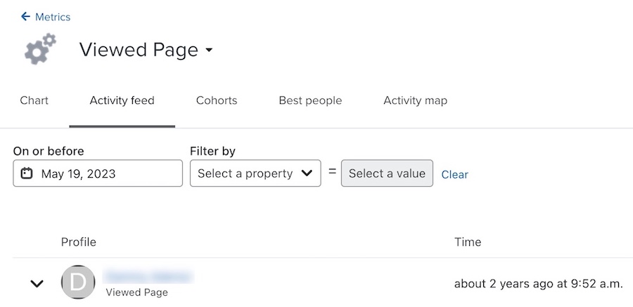 Als je je activiteit kunt bekijken, betekent dit dat de meetwaarde succesvol is tracking. Als je je activiteit niet ziet, probeer dan de pagina in Klaviyo opnieuw te laden.