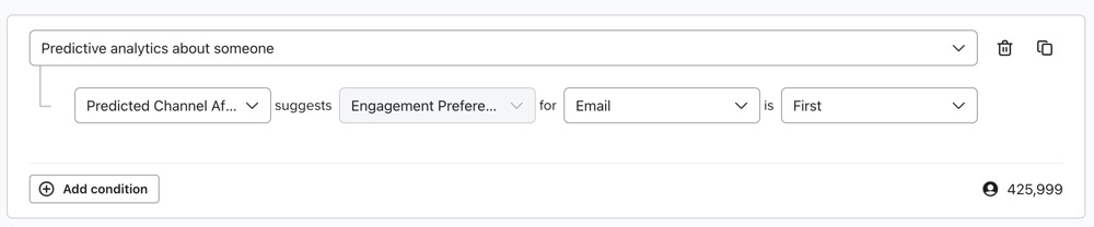 Je kunt segmenten maken met betrokkenheid voorkeur om klanten te groeperen op basis van hun kanaalvoorkeuren.