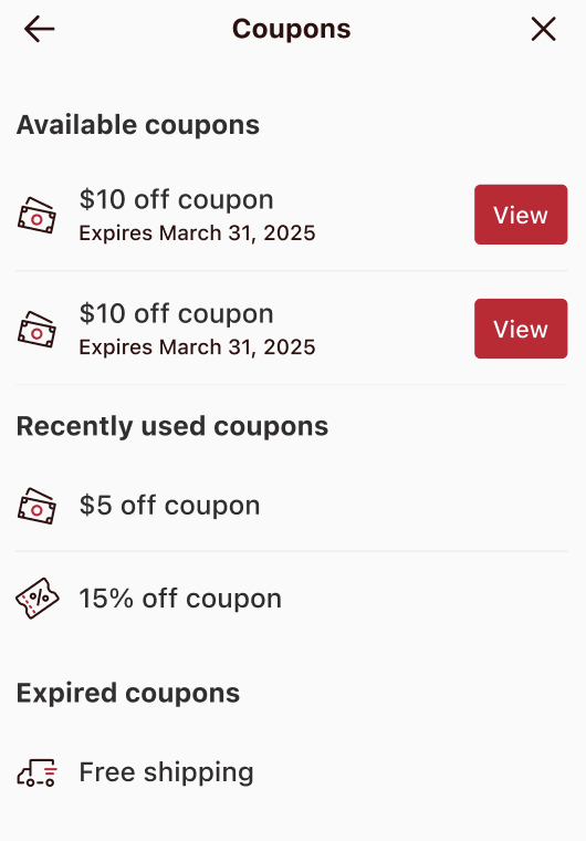- Een voorbeeld van het aantal beschikbare coupons van het profiel verschijnt ook op de pagina Beloningen. Deze preview wordt uitgebreid naar een gedetailleerde couponpagina voor inwisselen.