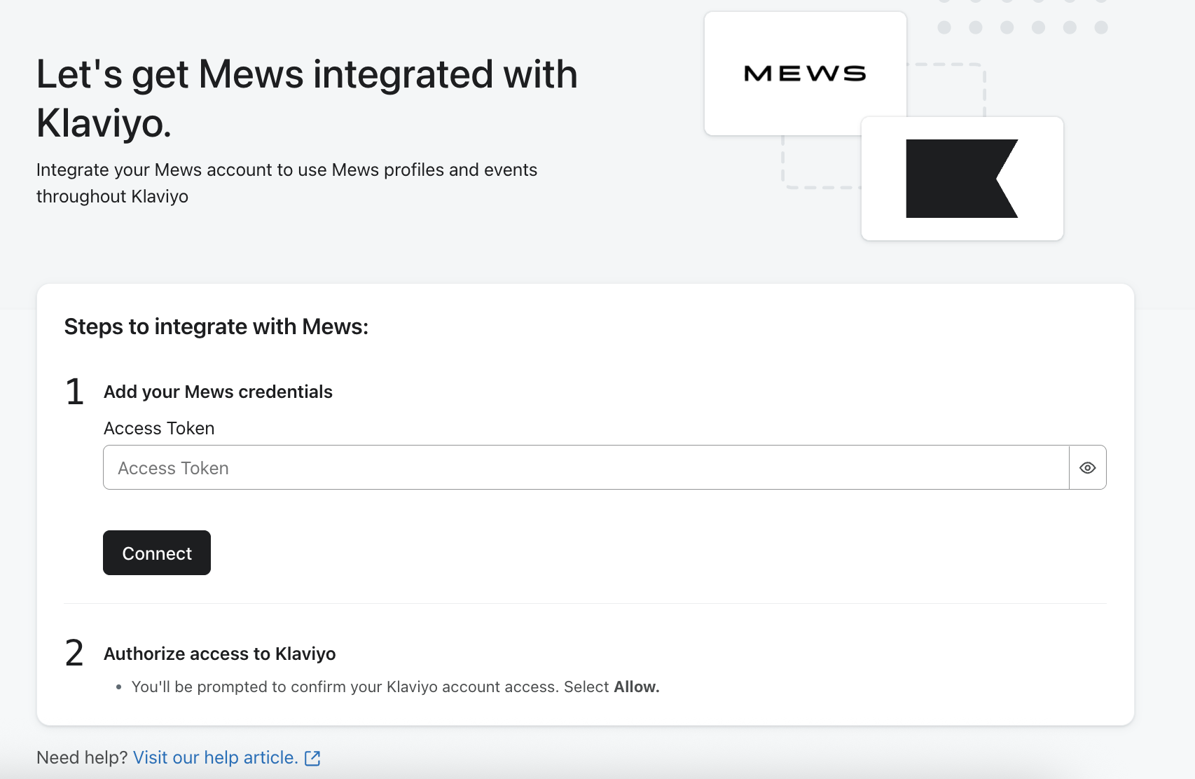 Maak een Mews-toegangstoken aan voor KlaviyoMaak een Mews-toegangstoken aan voor Klaviyo