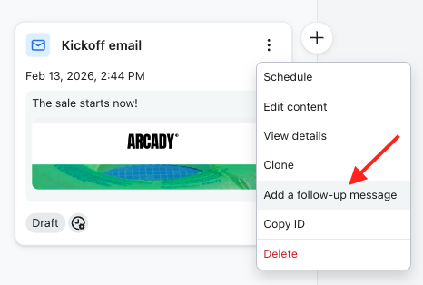 - Je moet minstens één bestaand bericht in je omnichannelcampagne hebben voordat je een follow-up kunt maken.