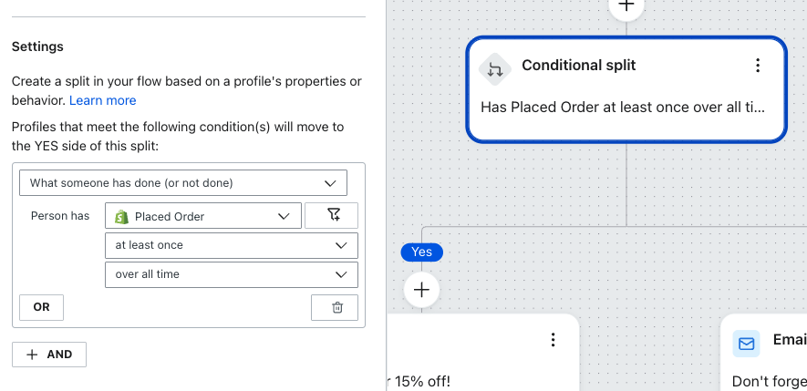 Ta konfiguracja spowoduje, że każdy, kto złoży zamówienie przed opóźnieniem czasowym, nie zostanie uwzględniony w sekwencji. Kolejnych e-maili nie będą również otrzymywać osoby, które po odebraniu pierwszej wiadomości złożył zamówienie.