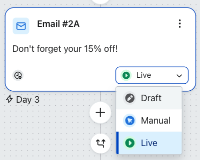 - Jeżeli gotowa będzie tylko część sekwencji, możesz zaktualizować status poszczególnych działań, klikając przycisk statusu u dołu każdego działania sekwencji, jak pokazano poniżej.
