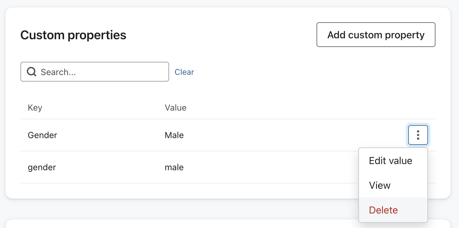 Najlepiej usuwać właściwości, które nie są już dla Ciebie przydatne. Nie można jednak usuwać właściwości Klaviyo, ponieważ są one domyślnie wbudowane w platformę Klaviyo. Jeśli chcesz usunąć utworzoną na koncie właściwość niestandardową, możesz zrobić to w samym profilu.