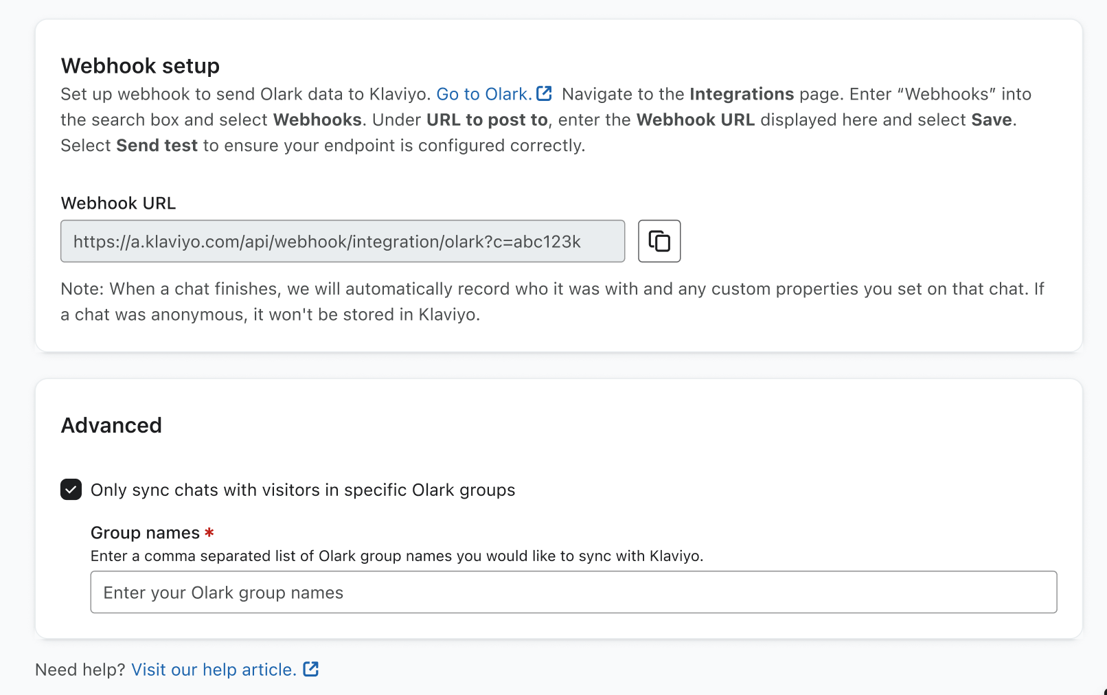 Gdy czat Olark dobiegnie końca, Klaviyo automatycznie zarejestruje, z kim był czat i wszelkie niestandardowe właściwości, które ustawisz dla tego czatu. Jeśli czat był anonimowy, strona Klaviyo nie wyświetli żadnych danych czatu.