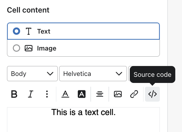 - W sekcji Zawartość komórki kliknij ikonę Kod źródłowy.