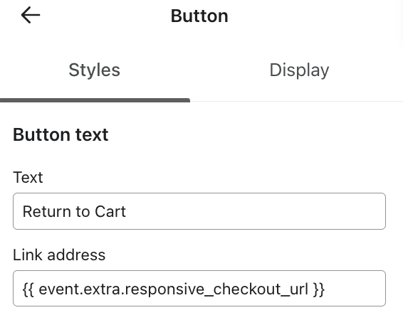 Jeśli masz problem z tym, że przycisk "Return to Cart" w wiadomości e-mail porzucony koszyk zakupowy sekwencja łączy się z prawidłową stroną, może być konieczna zmiana linku, na który wskazuje przycisk.
