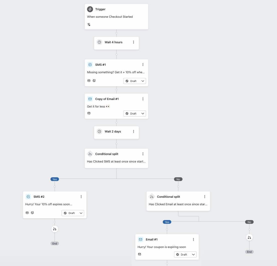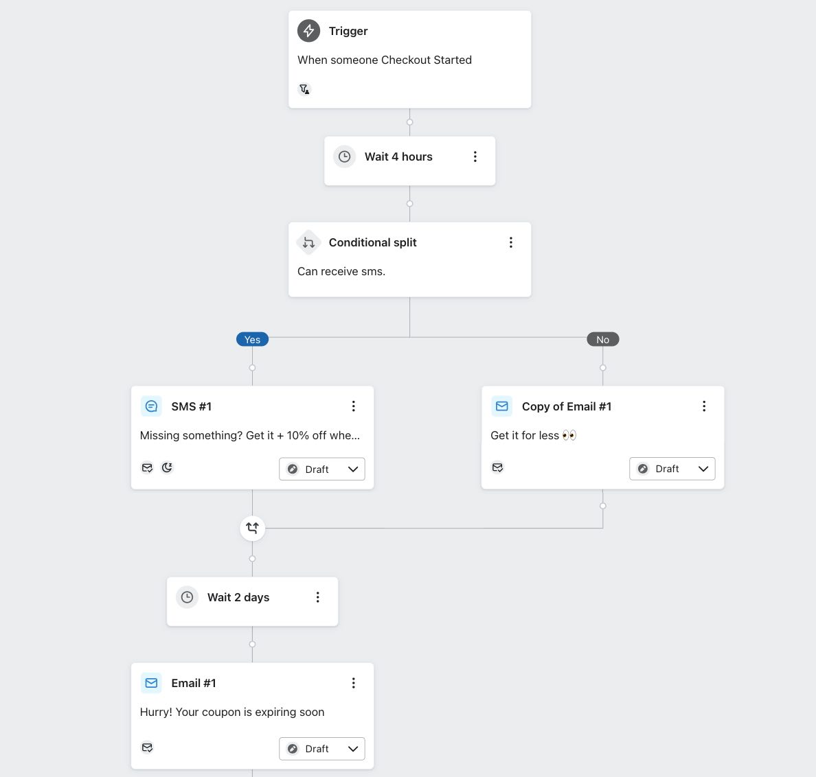 Na przykład niektóre firmy wolą skonfigurować swoją mieszaną sekwencję SMS i e-mail najpierw z pocztą elektroniczną. Powodem jest to, że wiadomości sekwencji (z wyjątkiem sekwencji powitalnej) nie są tak wrażliwe na czas jak kampanie. Ponieważ wyślesz SMS później, to podejście zużywa mniej kredytów niż rozpoczęcie od wiadomości tekstowej.