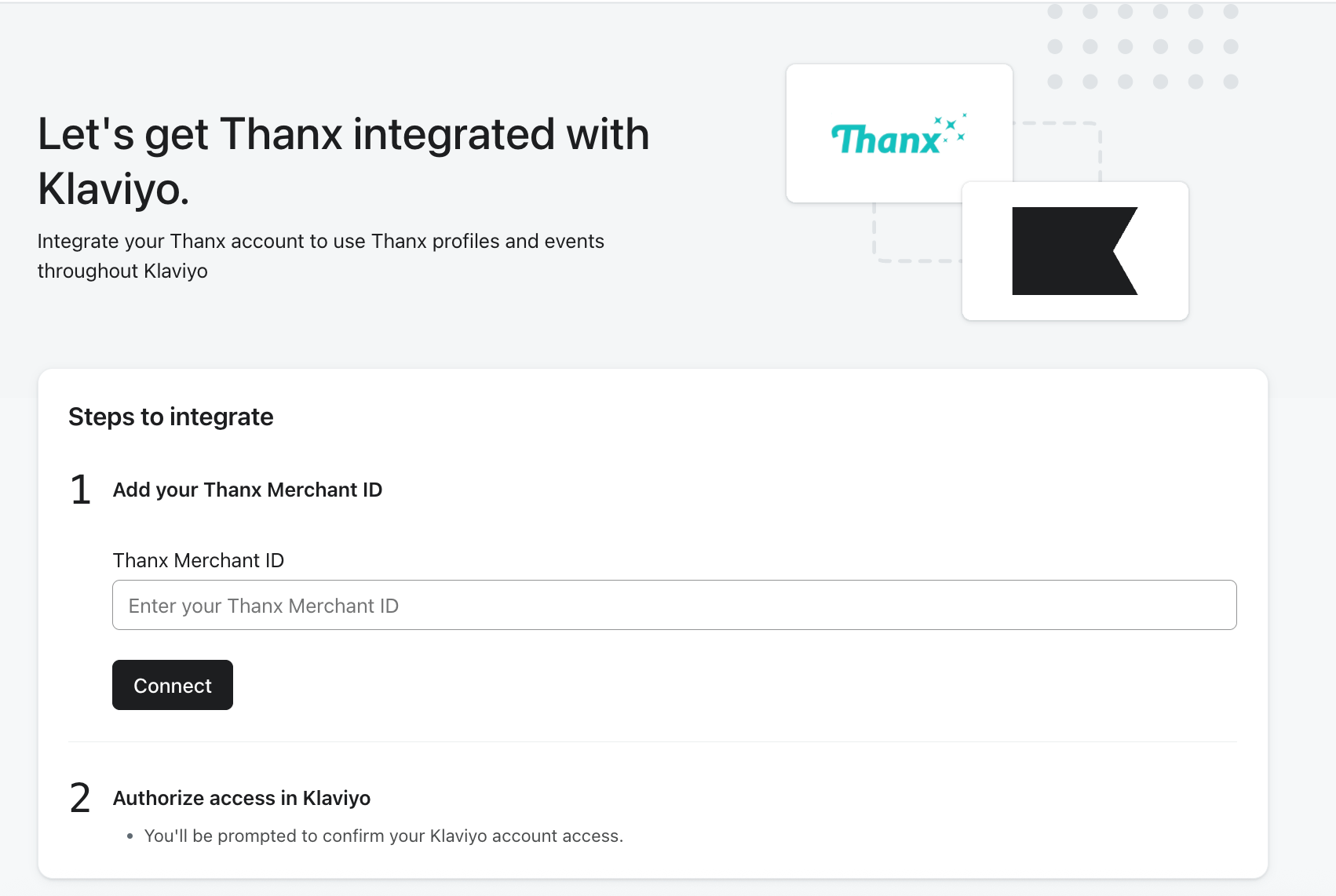 - Na następnej stronie wprowadź swój identyfikator sprzedawcy Thanx i kliknij przycisk Połącz.