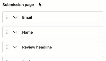 Aby zmienić kolejność elementów w sekcji Strona zgłoszenia lub Strona sukcesu , przeciągnij je i upuść za pomocą uchwytu po lewej stronie każdego z nich element.