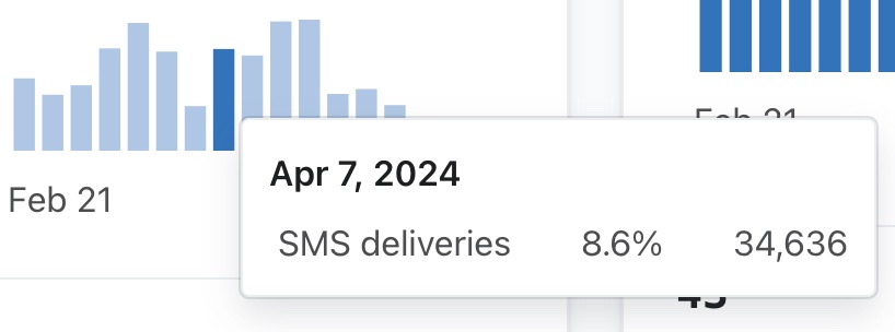 Po lewej stronie wykresu możesz sprawdzić, czy masz jakiekolwiek problemy z odbiorcami otrzymującymi wiadomości SMS (tj. wskaźnik dostarczalności).