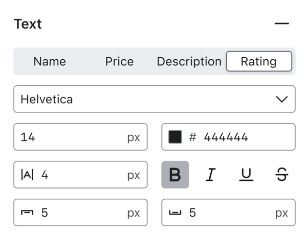 Po włączeniu ocen w bloku produktu możesz zmienić następujący element wyglądu oceny: