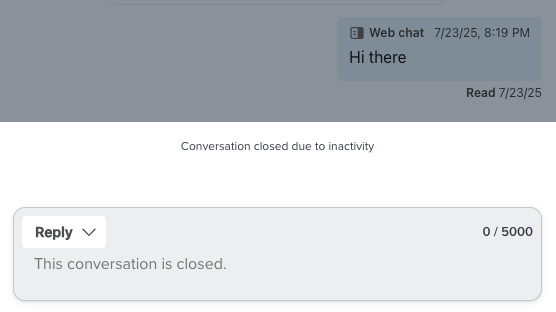 Nie. Tylko odpowiedzi klientów resetują licznik bezczynności. Timer uruchamia się po ostatniej wiadomości agenta lub agenta AI Klaviyo i automatycznie zamyka zgłoszenie, jeśli klient nie odpowie w określonym czasie.