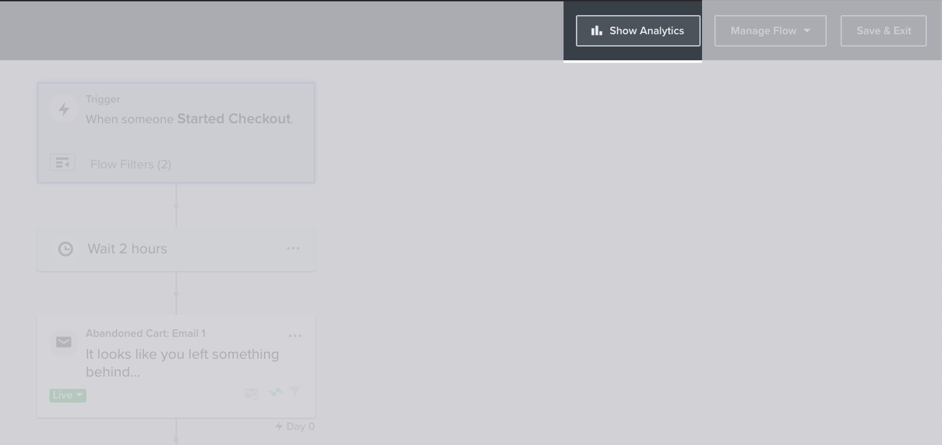 Możesz zobaczyć przegląd wydajności swojego koszyka zakupowego porzucony w sekcji Visual Canvas, klikając Pokaż dane analityczne.