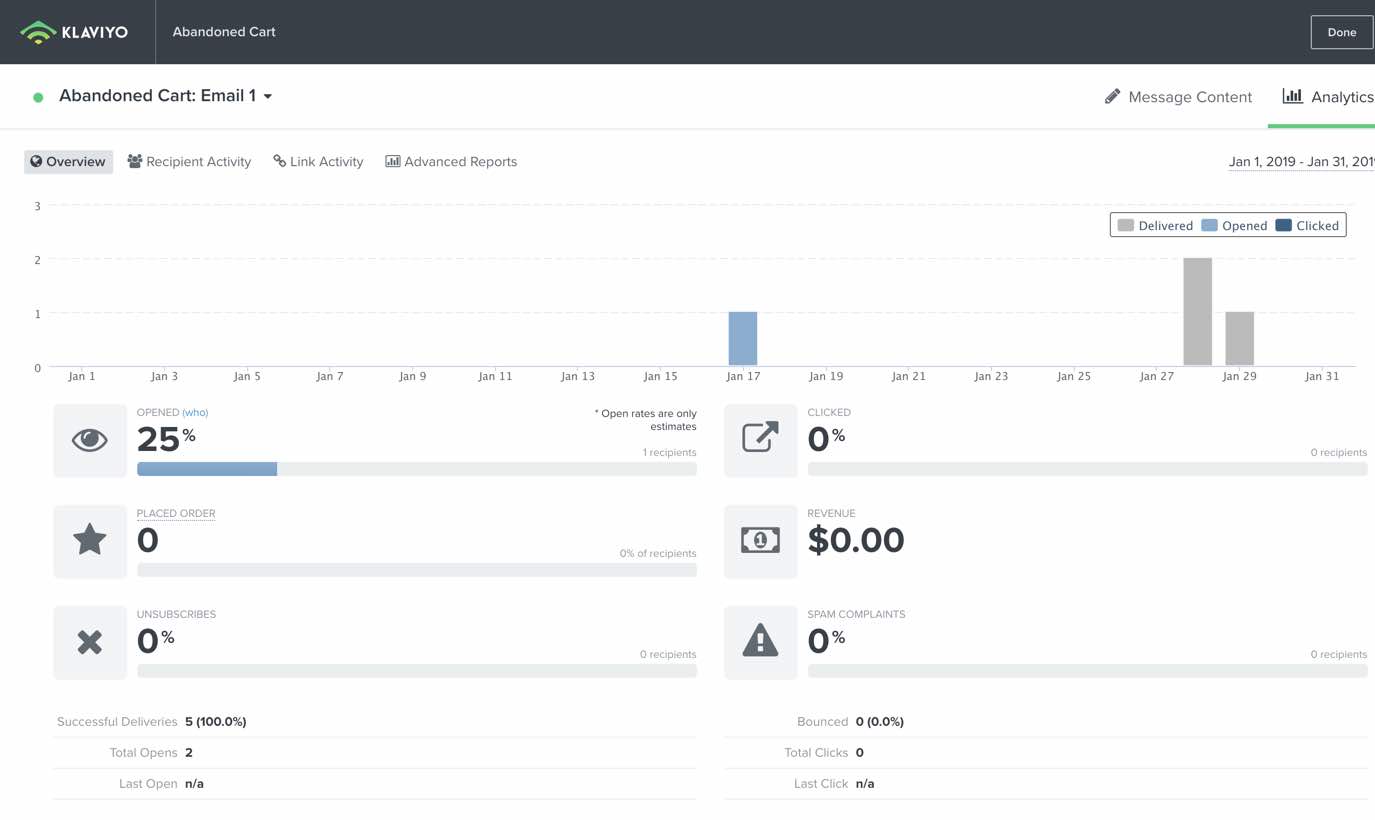 Dane analityczne są bezpośrednio związane z optymalizacją. Na przykład, jeśli zauważysz, że wskaźnik wyświetleń wiadomości e-mail jest niższy niż średnia, możesz przetestować A/B temat wiadomości lub czas, aby znaleźć coś, co może działać lepiej. Jeśli masz niski wskaźnik kliknięć, być może musisz uczynić swoje CTA bardziej oczywistym lub, w przypadku SMS, spróbować dołączyć obraz lub GIF. Jeśli zauważysz, że masz niższą niż średnia kwotę przychodów / przychodu na odbiorcę, możesz rozważyć zaoferowanie zniżki w drugim e-mailu, aby zachęcić ludzi do zakupu.