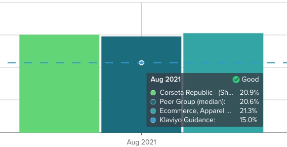 Além disso, ao passar o mouse sobre qualquer um desses gráficos, você verá como a classificação de desempenho (Excelente, Bom, Regular ou Ruim) foi obtida. Sua classificação reúne as práticas recomendadas da Klaviyo para benchmark, grupos semelhantes e estatísticas gerais do setor.