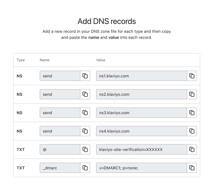 - Atualize-os com seu provedor de DNS (isso não é feito na Klaviyo).