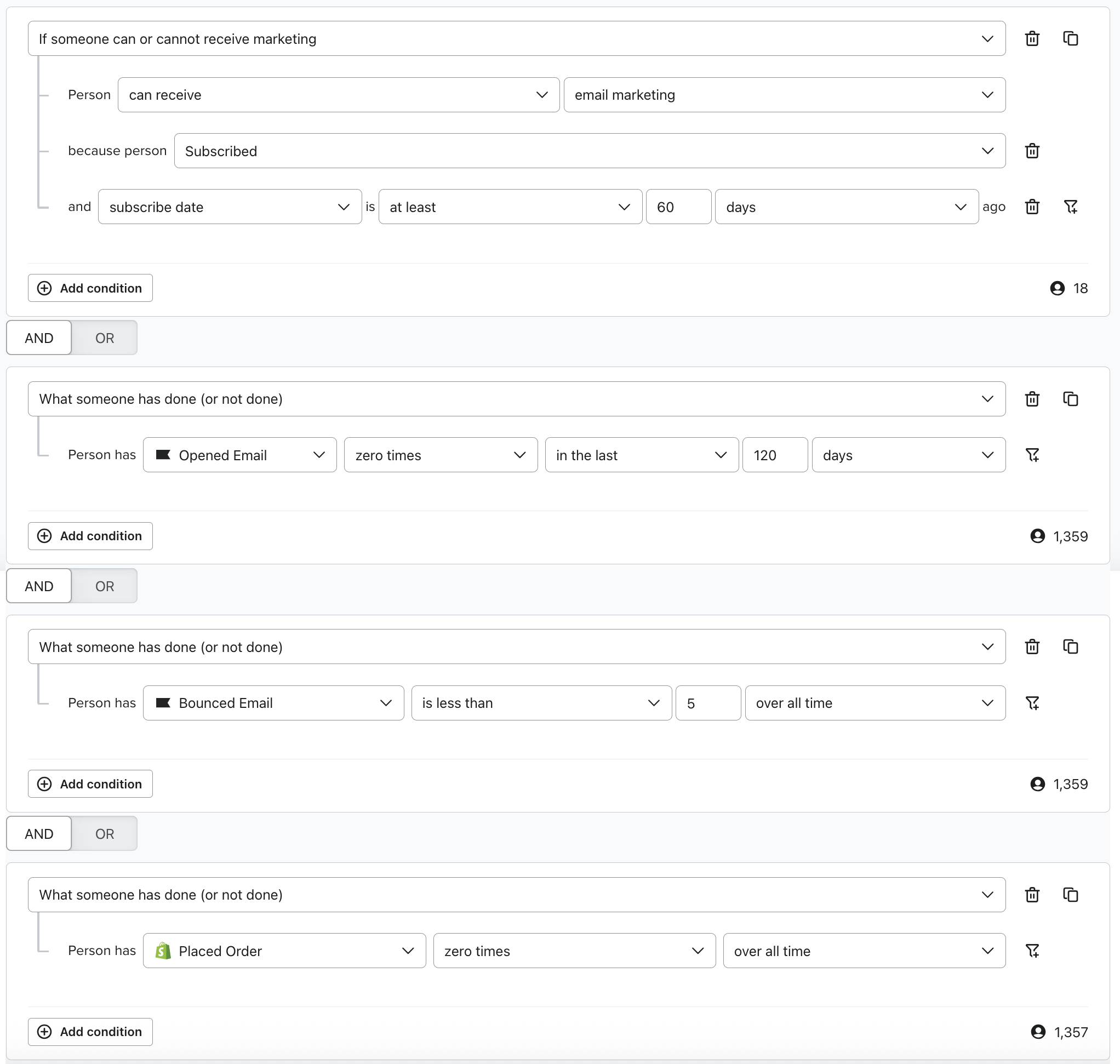 Primeiro, divida seu assinante não engajado em segmentos: aqueles que fizeram uma compra e aqueles que não fizeram uma compra. Isso permite que o senhor determine facilmente qual grupo é mais valioso depois de enviar sua Campanha.