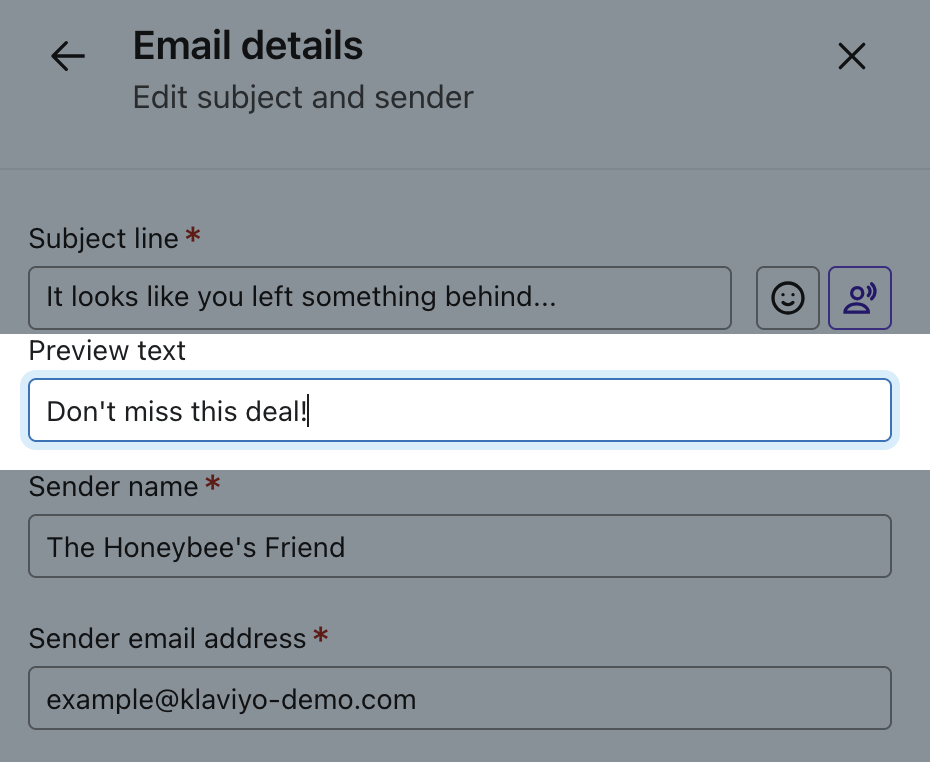 - No campo Preview text (Texto de visualização ), adicione o texto de visualização desejado.