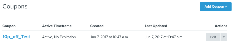- Clique em Add Coupon (Adicionar cupom ) para criar um novo cupom.