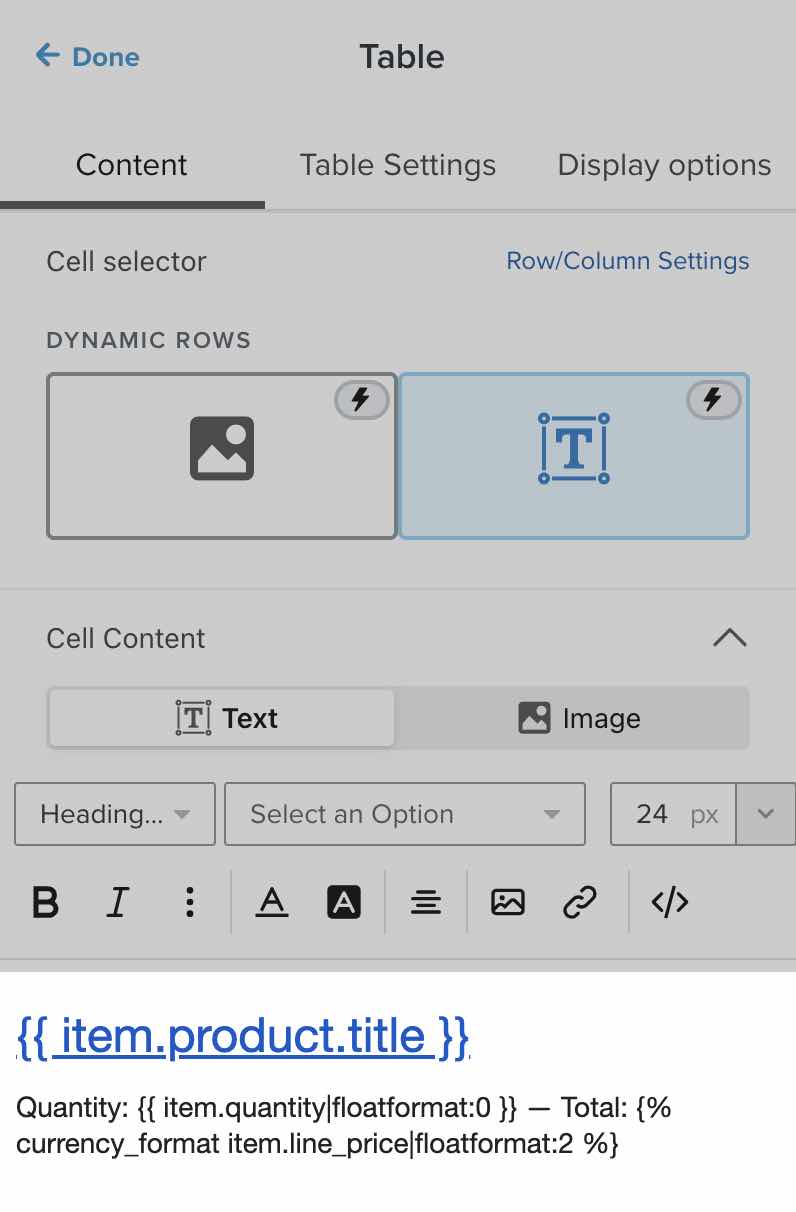- Abra um e-mail no fluxo que contém seu bloco de conteúdo dinâmico (ou seja, o bloco de tabela que exibe os produtos do carrinho de alguém).
