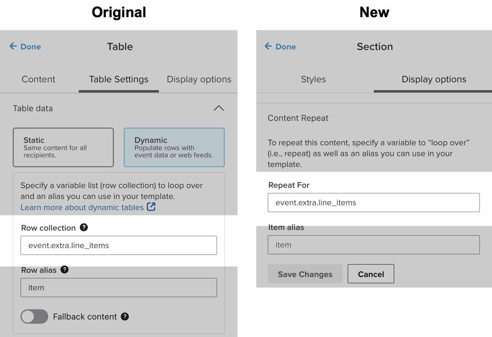 - Visualize seu e-mail para garantir que todas as informações do produto apareçam na nova seção. Se algo parecer incorreto, verifique se todos os elementos (ou seja, coleção de linhas, alias de linhas, URL de imagem dinâmica e conteúdo de texto) foram transferidos corretamente.