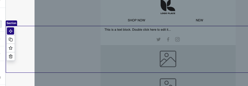 - Depois de selecionar uma seção e inseri-la no modelo, edite-a conforme necessário (por exemplo, adicionar imagens, adicionar links a botões, finalizar a cópia etc.).