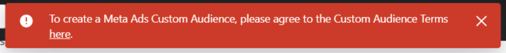 O senhor recebeu um dos seguintes erros ao tentar criar um novo público personalizado em suas integrações do Meta Ads em Klaviyo?