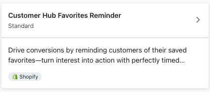 - Procure por "Favorites" e selecione o modelo de fluxo Klaviyo Customer Hub Favorites Reminder.