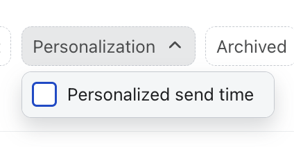 - Você também pode usar os filtros na lista de campanhas para visualizar apenas as campanhas que usaram o horário de envio personalizado.